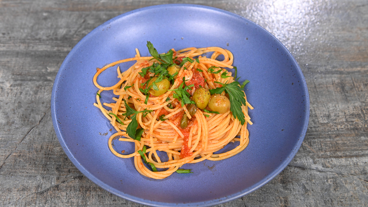 Салат Панцанелла. Спагетти путтанеска