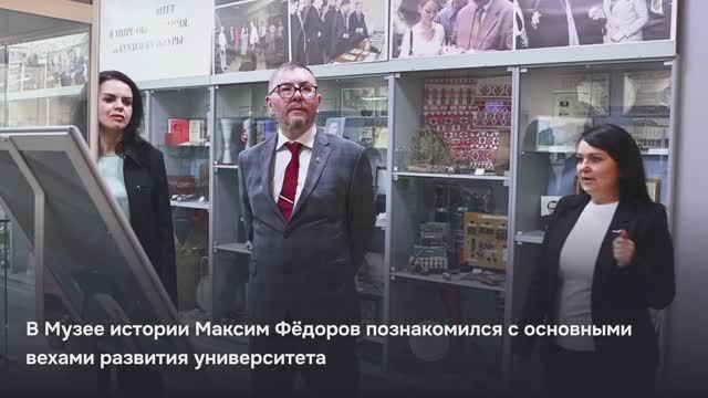 Максим Фёдоров исполняет обязанности директора Института проблем передачи информации РАН им А. А Харкевича. Учёный встретился с ректором вуза Евгенией Карловской, стороны обсудили перспективные направления научных исследований. В Музее истории Максим Фёдоров познакомился с основными вехами развития университета. Научные сотрудники геолого-минералогического музея рассказали учёному об уникальных экспонатах в экспозиции музея. Член-корреспондент РАН заинтересовался перспективными разработками НИИ Фармакологии живых систем НИУ «БелГУ». В «Проектории» Максим Фёдоров встретился со студентами, молодыми учёными, сотрудниками вуза, выступил с лекцией «ИИ и анализ химических рисков». Завершился визит учёного в БелГУ круглым столом «Перспективные направления исследований института инженерных и цифровых технологий»