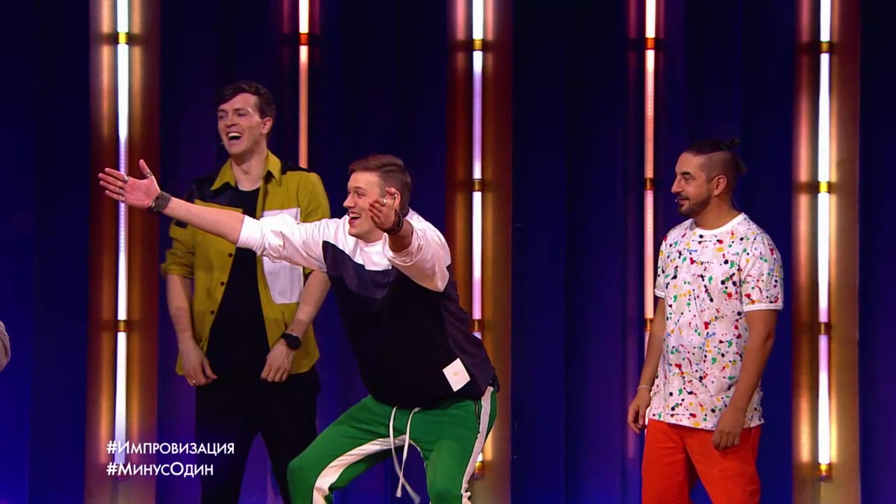 Импровизация «Минус Один». Коварный шаман хочет принести в жертву дочь вождя. Ребята разыгрывают заданную Павлом Волей ситуацию, а после этого они будут переигрывать ту же самую ситуацию, но каждый раз их будет становиться на одного меньше. Причем роль этого человека достанется кому-то из тех, кто останется. И так, пока внутри импровизации не останется кого-то одного. Ему нужно будет сыграть сразу все роли.