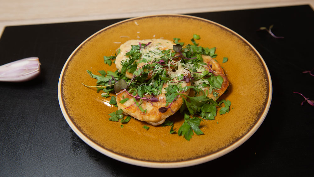 Оладьи с беконом и петрушкой. Кокосовый десерт. Лимонад из клюквы