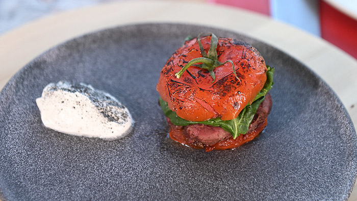 Овощной бургер с олениной. Грузинский соус из томатной пасты, лука и зелени