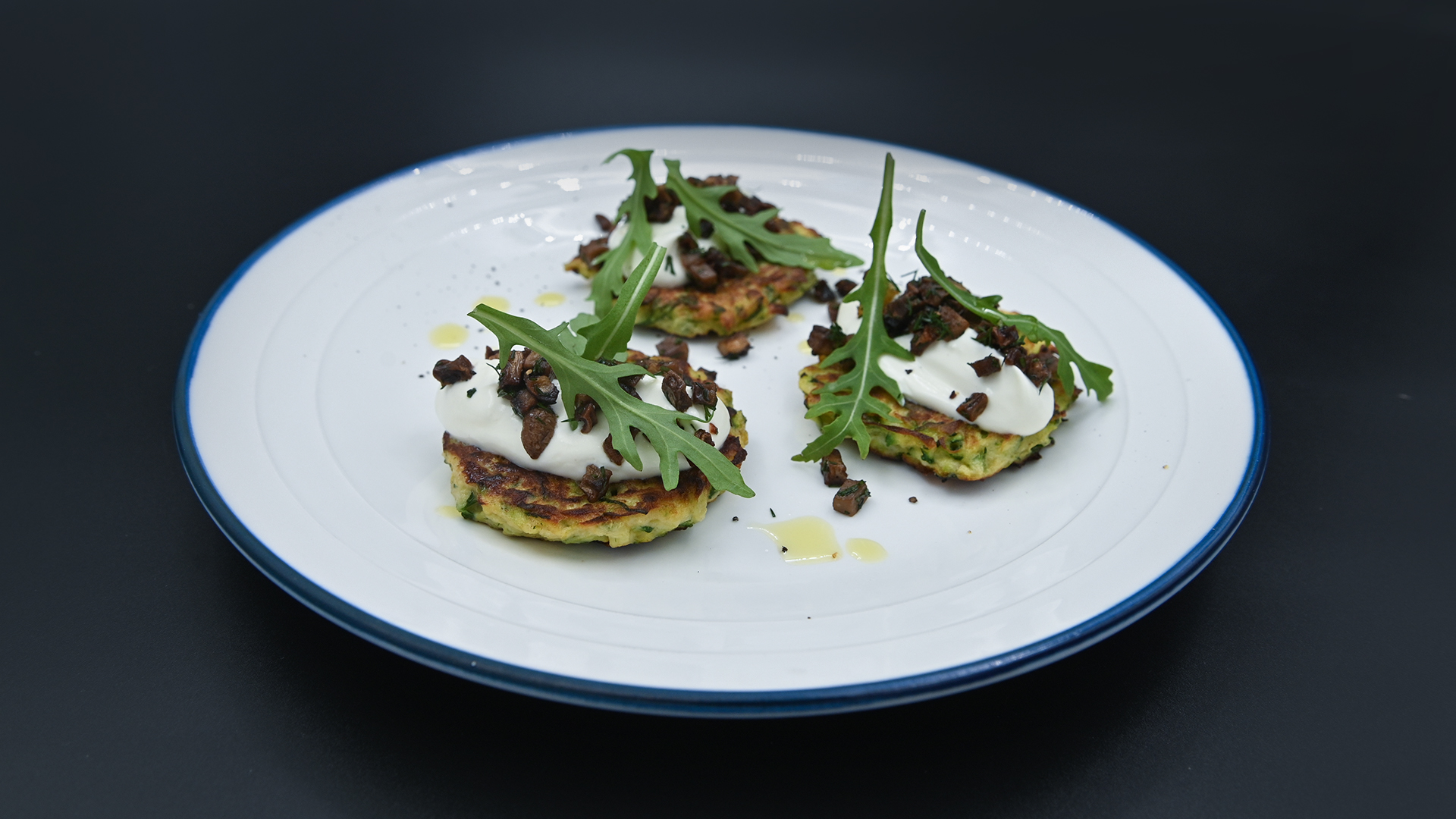 Драники из цукини с грибной сальсой и трюфельной сметаной