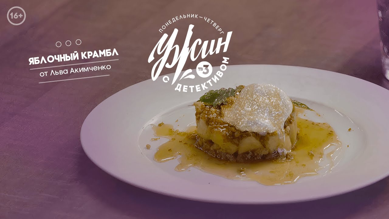 Вот и пришло время для финального блюда недели на "Ужин с детективом"?? Сегодня вместе с блогером Львом Акимченко мы приготовим невероятный яблочный крамбл? Для этого нам понадобятся: Яблоки свежие – 4-5 шт. Масло сливочное – 200 г Мука пшеничная – 100 г Сахар – 200 г Мука миндальная – 100 г На карамельный соус: Сахар – 100 г Сливки 33% – 200 мл Соль – 1 г Для сервировки: Пломбир сливочный – 200 г Мята свежая и карамельный соус по вкусу Шаг 1. Приготовить тесто для печенья. Для этого взять 100 граммов размягченного сливочного масла и добавить к нему по 100 грамм миндальной, пшеничной муки и сахара. Замесить тесто, затем завернуть его в пищевую пленку и убрать в холодильник "отдохнуть". Шаг 2. Подготовить яблоки. Очистить их от кожуры и нарезать на средние кубики. Достать тесто, порезать его на равные кусочки, разложить их на противень и слегка примять. Затем поставить в духовку и выпекать при 180 градусах в течение 10 минут. Шаг 3. Карамелизировать яблоки. Для этого разогреть сковородку, растопить сливочное масло и положить туда яблоки и сахар. Готовить, помешивая, 2-3 минуты. Шаг 4. Приготовить карамельный соус. Сахар растопить в сотейнике, отдельно прогреть сливки с солью, после чего влить их в растопленный сахар и хорошо перемешать. Шаг 5. Покрошить остывшее печенье в формочку-кольцо или мисочку. Выложить сверху яблоки вместе со сладким соком, чтобы печенье пропиталось. Затем добавить немного карамельного соуса и еще один слой крошки печенья. Снять кольцо и сверху положить шарик мороженого. Украсить десерт мятой и карамельным соусом. Приятного аппетита? #УжинСДетективом