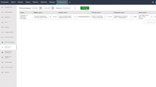 Отчет по сети топ услуг