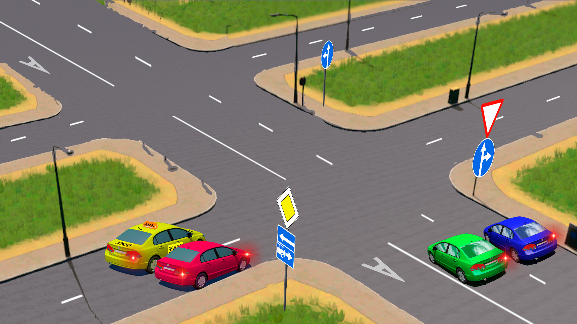 Для того чтобы определить разрешенные траектории для движения. Необходимо разобраться с особенностями участка дороги по которому движутся наш водитель, и обратить внимание на требования знаков. Решите эту задачу сами и поделитесь задачей с друзьями. Возможно, им тоже будет интересно?