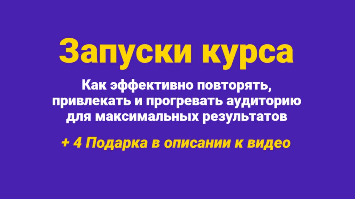 Повторные запуски курса - как эффективно повторять, привлекать и прогревать аудиторию для максимальных результатов! В этом видео, я расскажу как проводить запуски курса. Вы узнаете, как подготовиться, как происходит запуск, виды контента, которые нужно использовать для взаимодействия с аудиторией. А в конце расскажу разбор воронки продаж нашего запуска, который вы можете повторить. А здесь: https://vs-bumerang.ru/sxema-zapuskov/ - рассказываю, как продать курс (инфопродукт) на 12,7+ млн за 35 дней, без денег, без рекламы и без опыта! Перейди по ссылке, смотри видео и забери 4 Бесплатные видео-инструкции: 1. «Как создать вебинар, который взорвет мозг и принесет продажи» 2. «Секретные фишки для взрывных продаж на вебинаре» 3. «Повторные запуски курса» 4. «Что такое Рилс и как Reels помогают привлекать ЦА» Забери 4+ Бесплатные инструкции и все остальное, что мы приготовили для тебя! Telegram бот, который выдает Подарки (без подписки): https://t.me/repost_bonus_bot Для опытных продавцов и новичков, которым нужна схема запусков и высоких продаж без рекламы и бюджета! ***Запуски курса: как правильно подготовить и провести успешный запуск*** В современном мире онлайн-образования запуск курса — это ключевой этап, который определяет его успех и популярность. В этом видео мы подробно расскажем о том, что такое запуск курса, зачем он нужен и как правильно его провести, чтобы привлечь максимальную аудиторию и обеспечить высокий уровень продаж. Что такое запуск курса? Запуск курса — это комплекс мероприятий, направленных на привлечение внимания целевой аудитории к новому образовательному продукту. Это стартовая точка, когда вы объявляете о своем курсе, создаете интерес и стимулируете потенциальных студентов к покупке. Запуск курса — это не просто публикация лендинга или объявление в соцсетях, это стратегический процесс, включающий подготовку, промо-кампанию и активное взаимодействие с аудиторией. Зачем нужен запуск курса? Правильный запуск курса — залог его успешных продаж и высокой узнаваемости. Он помогает: 1. Создать ажиотаж и интерес к вашему продукту. 2. Привлечь целевую аудиторию и сформировать базу потенциальных клиентов. 3. Повысить доверие к вашему бренду и экспертизе. 4. Обеспечить быстрый старт продаж и окупаемость курса. 5. Получить обратную связь и улучшить продукт перед массовым запуском. 6. Без грамотного запуска курс рискует остаться незамеченным, а вложенные усилия — не окупиться. Как правильно проводить запуск курса? Планирование и подготовка — ключевые этапы успешного запуска курса. Вот основные шаги: 1. Анализ целевой аудитории - понимание потребностей, проблем и желаний вашей аудитории — основа для создания привлекательного предложения. 2. Создание уникального торгового предложения (УТП) - выделите преимущества вашего курса, подчеркните, чем он отличается от конкурентов. 3. Подготовка контента и лендинга - разработайте продающую страницу, которая четко объясняет ценность курса, включает отзывы, бонусы и призыв к действию. 4. Формирование предварительного интереса - используйте соцсети, email-рассылки, вебинары и бесплатные мини-курсы для привлечения внимания и сбора базы потенциальных участников. 5. Запуск курса: основные этапы а). Анонс: объявите о начале продаж, создайте ощущение срочности. б). Промо-кампания: используйте email-рассылки, соцсети, таргетинг, коллаборации