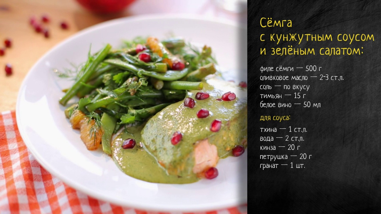 Рецепт сёмги с кунжутным соусом и зелёным салатом