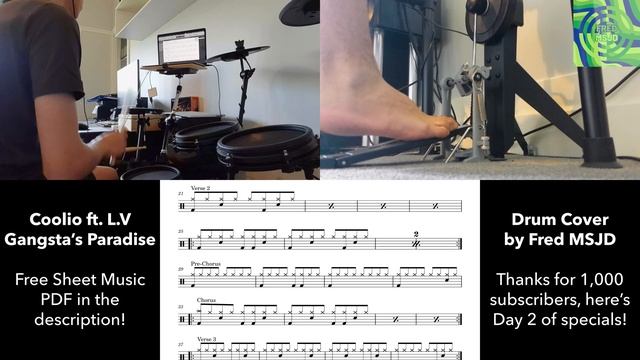 Thanks for 1,000 subscribers, here's the amazing day 2 of specials! Out of most of my videos so far, I worked very hard on this one as I had never done a full drum cover before! Using Logic Pro for input/output of my Alesis Nitro electronic kit was already great so I could use my previously uploaded Drumless Sheet Music of this song in Logic Pro using the Movie feature to play along with while I record! That was only the first step though! The second step for my setup was a bit more painful: getting the cameras set up. I used my Samsung Galaxy A12 for the main camera, which took a while to get in the best position I could. The foot camera was easier, as I used my old Samsung Galaxy S4 (still works great with LineageOS!) to record it, leaning on one of the drum kit's legs on the ground. I really like this song and it was great playing it, especially with my setup (my sheet music and cameras)! I hope you like it too! This video is in 4K as well! Items, devices and software to make this all possible: - Alesis Nitro Mesh Kit (electronic drum kit) - MacBook Air M1 (device to read from while playing and for editing) - Samsung Galaxy A12 (main camera) - Samsung Galaxy S4 (foot camera) - Adobe Premiere Pro 2024 (editing software on MacBook Air M1) SOUNDCLOUD: https://soundcloud.com/fmsjd BUY ME A COFFEE: https://www.buymeacoffee.com/fmsjd SUPPORT MY CHANNEL: Subscribe! Have a great day!
