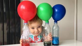 Рецепт веселого эксперимента: пищевая сода, уксус, пищевой краситель, пара бутылок и воздушные шарики.
