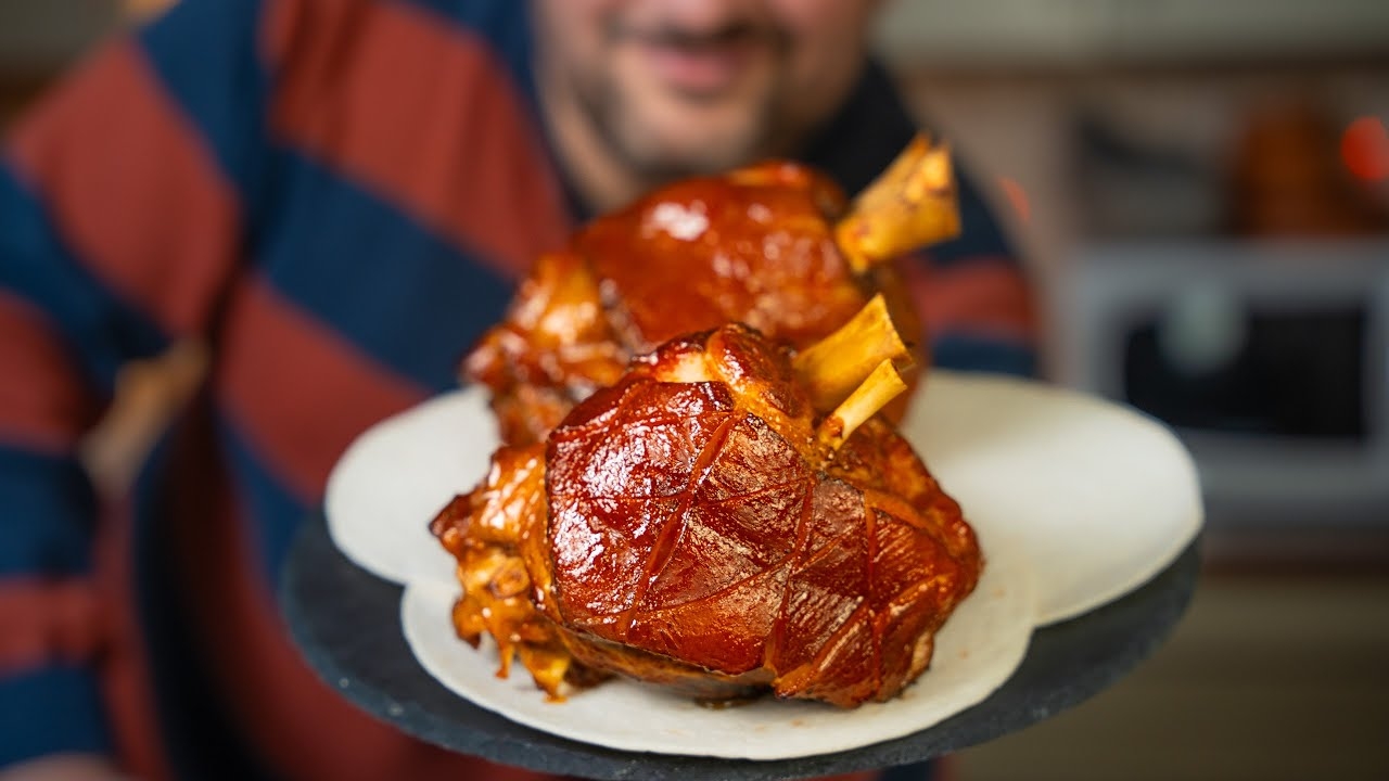 Рулька которая тает во рту! Ингредиенты: Рулька - 2 шт. по 1.2 кг Для варки: ➊ Пиво нефильтрованное - 1 л ➋ Лавровые листья - 3 шт. ➌ Черный перец горошком - 15 горошин ➍ Морковь - 1 шт. ➎ Лук - 2 средние ➏ Стебель сельдерея - 2 шт. ➐ Соевый соус - 100 мл ➑ Соль - 1.5 - 2 ст.л. ➒ Вода - 1 л Для глазури: ➊ Кетчуп - 3 ст.л. ➋ Острый чили соус - 2 ст.л. ➌ Горчица - 1 ст.л. ➍ Мёд - 1 ст.л. ➎ Сок половины лимона 🍖🍖🍖 00:00 - вкусное начало 00:36 - подготавливаем мясо 00:58 - варим рульку 03:26 - два варианта запекания 04:12 - готовим глазурь 05:39 - смазываем мясо 06:16 - отправляем в разогретую духовку 07:00 - дегусташвили #кухнясакцентом #рецептрульки #кухнясакцентомзураб