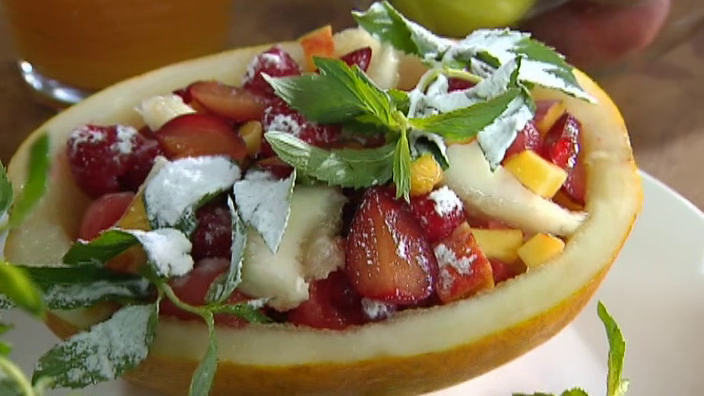 Рецепт фруктового салата в корзине из дыни