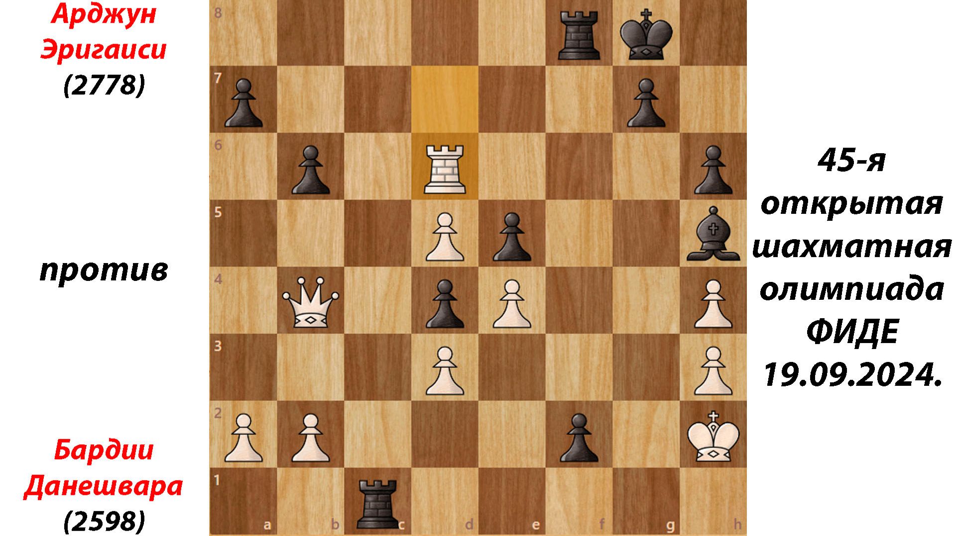 Арджун Эригаиси против Бардии Данешвара. 45-я открытая шахматная олимпиада (ФИДЕ). 19.09.2024. #шахматы #шахматныепартии #шахматныепартии2024