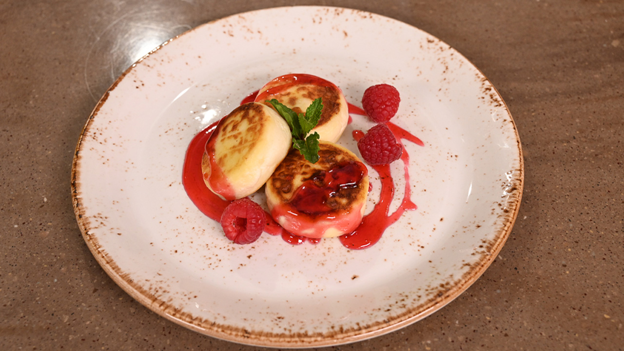 Сырные сырники с малиновым соусом