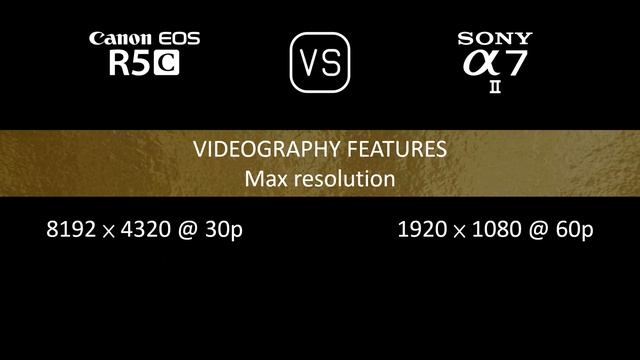 This video overviews the Canon EOS R5C and the Sony A7 II in a parallel comparison of specifications. Thanks for watching. If you liked this video and found it informative, make sure to subscribe for more. 00:24 LAUNCH 00:32 BODY 00:41 SENSOR 01:05 IMAGE 01:21 OPTICS & FOCUS 01:50 SCREEN 02:10 VIEWFINDER 02:26 PHOTOGRAPHY FEATURES 03:27 VIDEOGRAPHY FEATURES 03:43 STORAGE 03:47 CONNECTIVITY 04:16 PHYSICAL 04:36 MISC