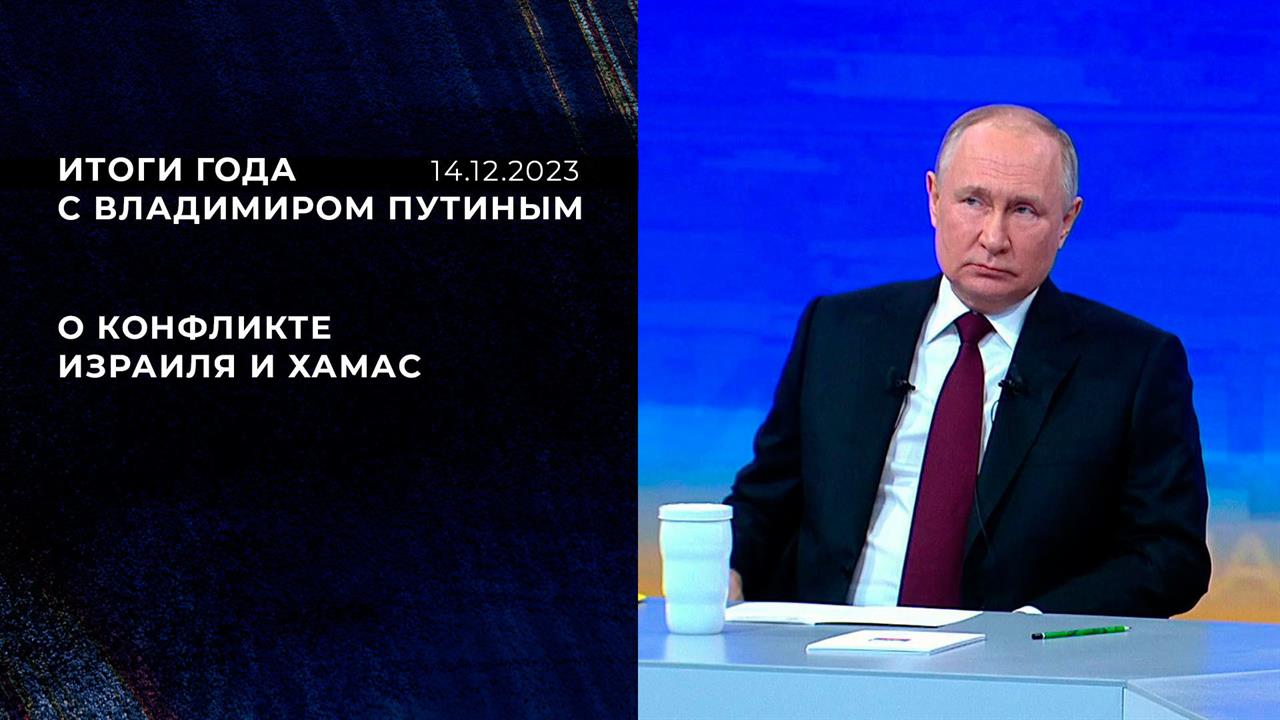 Владимир Путин рассуждает о ситуации в Секторе Газа, роли ООН и Запада в урегулировании конфликта, а также сравнивает войну на Ближнем Востоке с СВО. Кроме того, президент отвечает на вопрос турецкого журналиста о возможной встрече с Реджепом Эрдоганом.