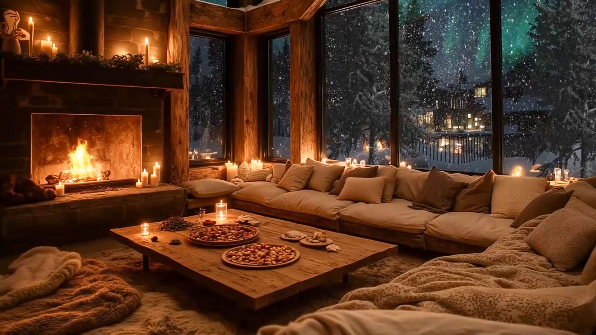 Тёплый камин освещает уютную комнату, за большими окнами медленно падает снег, а в ночном небе мерцает северное сияние. Свечи, мягкий свет огня и спокойный джаз создают атмосферу тишины, уюта и полного расслабления. Это видео подойдёт для спокойного вечера, отдыха после долгого дня, чтения, размышлений или сна. Оставьте суету за пределами этого вечера и просто побудьте в тепле. #камин #зимняяночь #северноесияние #уют #джаз камин ночью, зимний уют, северное сияние за окном, джаз для отдыха, тёплый вечер у камина, свечи и камин, зимний вечер дома
