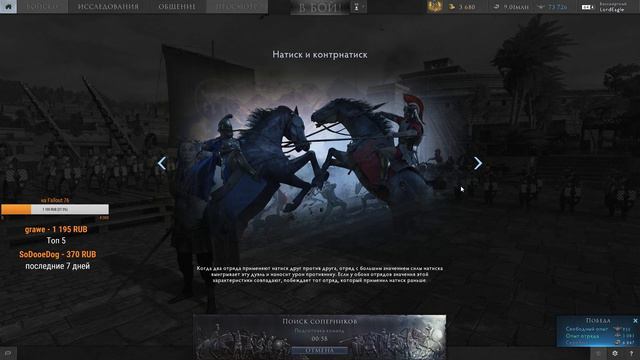 Total War Arena Сайт: http://lordeagle.ru/ Подпишись):https://www.youtube.com/channel/UChBHi8da7YIWaLKzroxUlrw Моя группа ВК: https://vk.com/lordeaglepublik Донат: http://www.donationalerts.ru/r/lordeagle Старейший портал по стратегиям в Рунете The Way of War: http://twow.ru/ TWoW.ru в ВК: https://vk.com/twow_games Дискорд: Скачать дискорд можно тут: https://discordapp.com/ Мой сервер в дискорде: https://discord.gg/496GePM Клан Арены в котором я состою: Сервер клана Рать TWA: https://discord.gg/QxVSbCD Кланы Арены: Сервер клана Via Militera: https://discord.gg/pcJusnt Сервер клана Immortal: https://discord.gg/nENR2WV Топ 10 Донатеров: Skakmat 15 000 1RISE1 2015.92 Zab Zaba 1 240 grawe 1 195 Duxbellator 1 000 Валерик 845 Александр Дмитриев 800 УльтраРеалити 800 на букву Х 770
