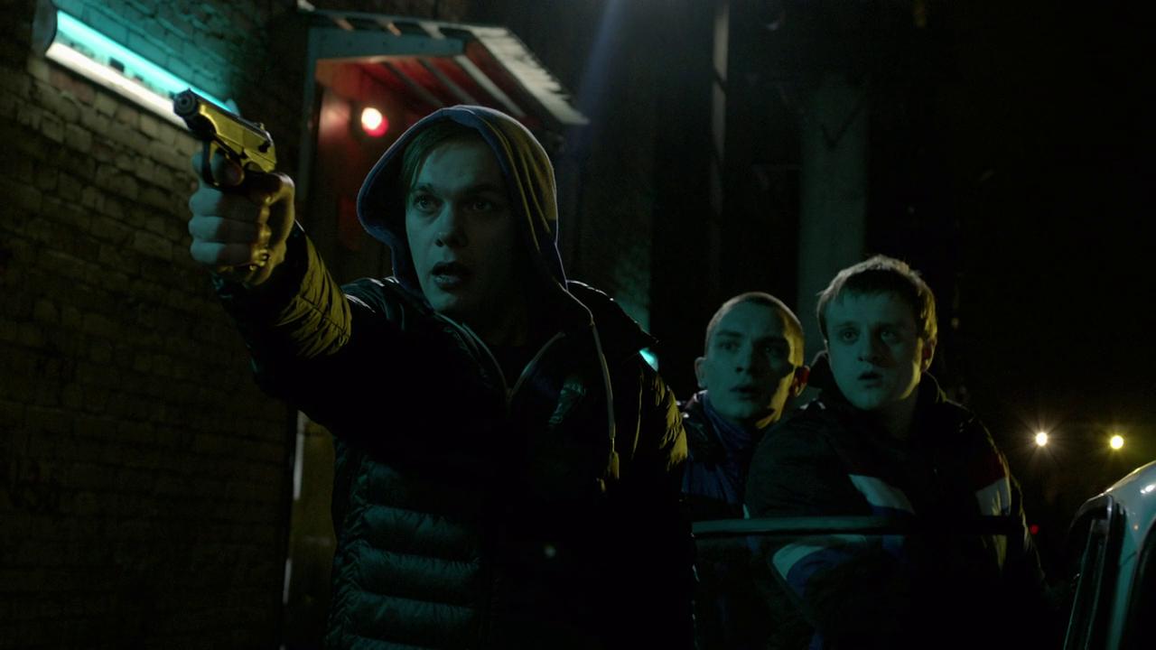 Тим, Цыпа и Гоша вызволяют Жука из полицейской машины.