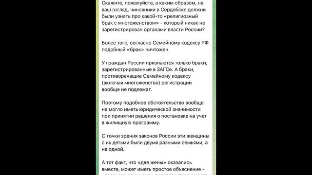 Поддержите нас донатом 5599 0020 9799 4521 Юмани карта Наш тг там больше видео https://t.me/reallyworldtoyou Выяснилось, что чтобы выделить два жилищных сертификата ваххабитам-многоженцам, была грубо кинута местная многодетная семья Олеся (имя изменено) обращалась в администрацию города 3 года назад и хотела расширить свои жилищные условия, но ей сказали, что её квартира уже достаточно просторна для проживания семерых человек. «У меня пятеро детей, и в сертификате мне отказали потому что было превышение площади жилья на 10 кв м., - сказала Олеся. - Я спрашивала в администрации города, что может всё-таки собрать документы, мне ответили что собрать и подать, конечно, могу, но только зря потрачу время». Вся семья из 6 человек жила на 40 метрах, кроме того Олеся была беременна пятым ребенком, и семья хотела расширить жилищные условия. И подобных сообщений за последние сутки из разных городов России у нас десятки. Поэтому, комментарии как на скринах о том, что «администрация ничего не знала и действовала по закону просто смешны». Ага, не знали они, что у замоташек дети от одного таджика. Интересно, как так получается, что наш замечательный канал вскрывает очередное подобное дело и суть их как под копирку, что в Мытищах, что в Нижнекамске, что здесь. Там очевидная коррупционная составляющая суть которой обнал жилищного сертификата. Кроме того, ещё СМИ пишут, что таджик Гадоев раньше работал в администрации Сердобска, каким-то разнорабочим. Прям как Тахмина работала у Купецкой перед счастливым получением жилищного сертификата. О геноциде русских в Таджикистане смотрите в нашем тг(здесь цензура не пропустит) https://t.me/reallyworldtoyou/295