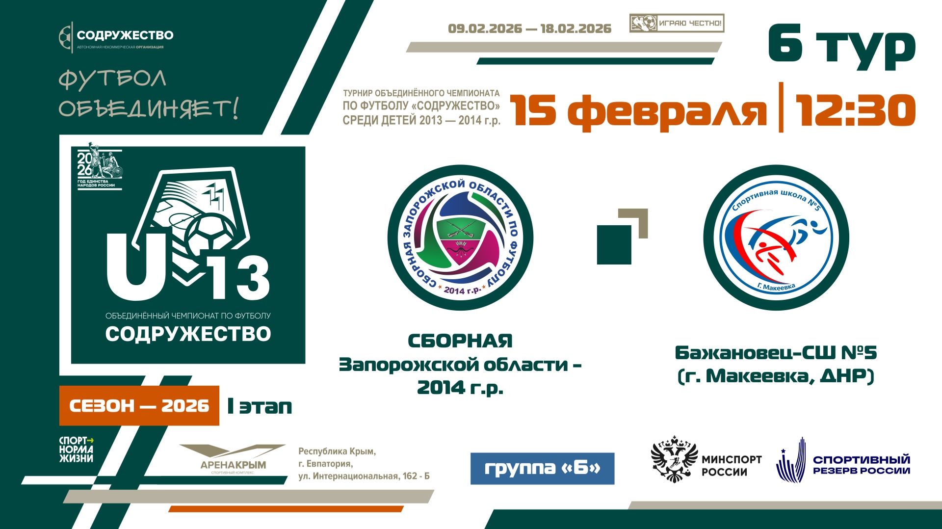 6 ТУР [Группа Б] | Сборная Запорожской области 2014 г.р. - «Бажановец-СШ №5» (Макеевка) | 15.02.26