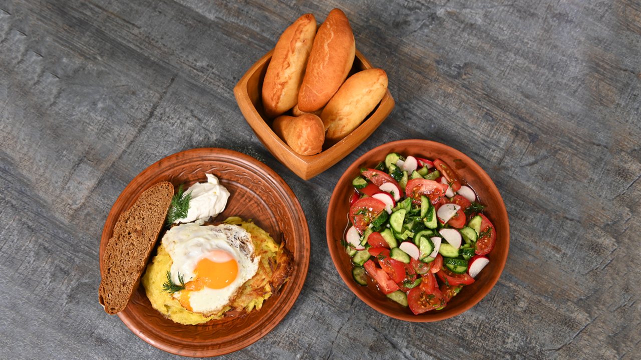 Колдуны. Домашний овощной салат. Жареные пирожки с джемом