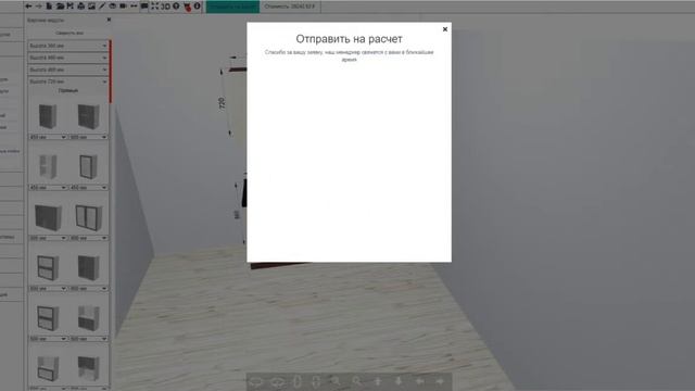 Демонстрация процесса получения медели кухонного гарнитура в формате программы Базис-мебельщик из онлайн планировщика PlanePlace