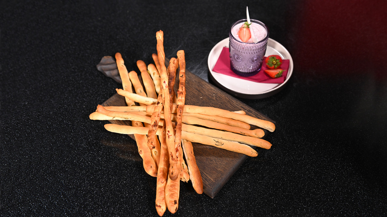 Хлебные палочки Гриссини. Смузи из клубники и кокоса