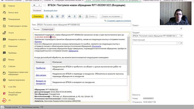 Демонстрация работы модуля обработки входящих писем, добавленного в последний релиз веб-портала для 1C:ITIL