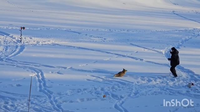 Лиса нападает на рыбака