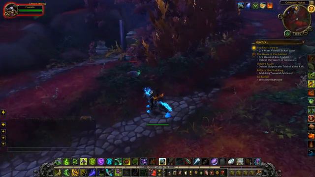 Recorded with XSplit. Head to the Crimson Thicket; I did so by taking the Sanctum of Order portal back to Shal'Aran, then catching a flight to the Crimson Thicket. From here, you'll need to go to Kel'balor, which at this point you have visited to open the ley line feed located there. Once you have arrived, go straight ahead through the first intersection and Arcanist Valtrois will teleport to the tunnel. Once she arrives, she wants you to follow her to the ley line feed, where she will channel a spell and you will be attacked by 2 Ley Line Channelers. As you fight them, Arcanist Valtrois will continue her channeling; once she is done, you will progress from the quest objective to protect her. Return to Shal'Aran and speak with First Arcanist Thalyssra to turn in the quest at this point. This is the final quest of the Elisande's Retort quest line for the Insurrection Legion quest achievement.