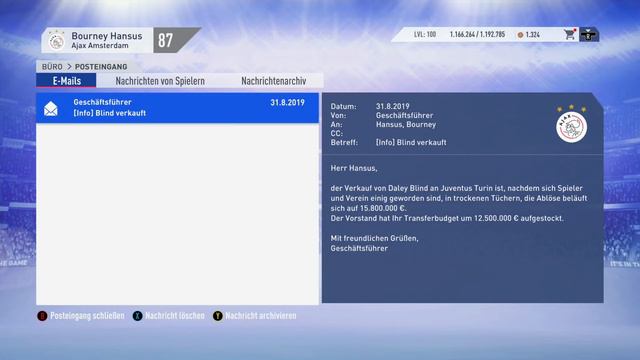 FIFA 19 : JEDES TRANSFERANGEBOT ANNEHMEN 🛑 ABER 🛑 Ajax Amsterdam Karriere Challenge ✘LETZTES VIDEO ► https://youtu.be/I-b9gmf9928 ✘FIFA 19 ► https://amzn.to/2oircg1 * ▼ Social Media, Ausrüstung, Infos uvm. ▼ ✘Mitglied werden ► https://goo.gl/aEbYS8 (Werbung) ✘Shirts, Tassen uvm. im Hansus-Style! ► https://goo.gl/UqOCd6 (Werbung) ✘Social Media: ► Facebook: http://www.derhansus.de/facebook ► Twitter: http://www.derhansus.de/twitter ► Instagram: http://www.derhansus.de/instagram ► Twitch: http://www.derhansus.de/twitch ► Email: hansus.lp@gmx.de ► Zweitkanal: https://www.youtube.com/user/DerHansus ✘Unterstützung über MMOGA: http://mmo.ga/9dKB * ► FIFA-Points: https://mmo.ga/d7EZ * ► FIFA-Keys: https://mmo.ga/q2Pl * ► FIFA19-Key: https://mmo.ga/N3Sf * ► PSN-Karten: http://mmo.ga/Ph5j * ► XBox-Live-Guthaben: http://mmo.ga/I3wK * ✘Unterstützung über Amazon: http://amzn.to/1Bx3zna * ✘Ausrüstung: ► FIFA 19: https://amzn.to/2oircg1 * ► Mikrofon: http://amzn.to/2qmwrLD * ► Aufnahmegerät: http://amzn.to/2cNNNiq * ► Konsole: https://amzn.to/2PPFdNM * ► Controller: http://amzn.to/2ctAYph * ► Maus: http://amzn.to/2crplA6 * ► Tastatur: http://amzn.to/2ctzaN1 * ► Kamera: http://amzn.to/2dDB3Yr* ► Trikot-Rahmen: http://amzn.to/2pycL9A * ✘Musik: ► Outro-Lied: Bob Bradley - Only One ► https://www.monstercat.com/ ► https://de.audionetwork.com/ ► https://www.epidemicsound.com/ ✘Die mit * gekennzeichneten Links sind sogenannte Affiliate Links. Kommt über einen solchen Link ein Einkauf zustande, werde ich mit einer Provision beteiligt. Für Dich entstehen dabei keine Mehrkosten. Wo, wann und wie Du ein Produkt kaufst, bleibt natürlich Dir überlassen. ✘Zum Video: Viel verrückter kann eine FIFA 19 Karrieremodus Challenge kaum sein!