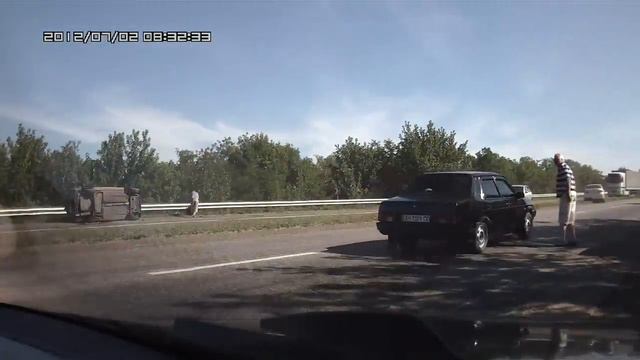 ДТП на трассе перевернуло на бок тачку