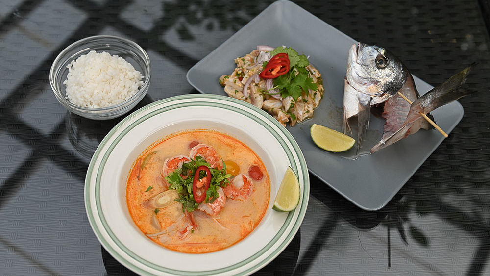 Том ям с креветками. Севиче из дорадо