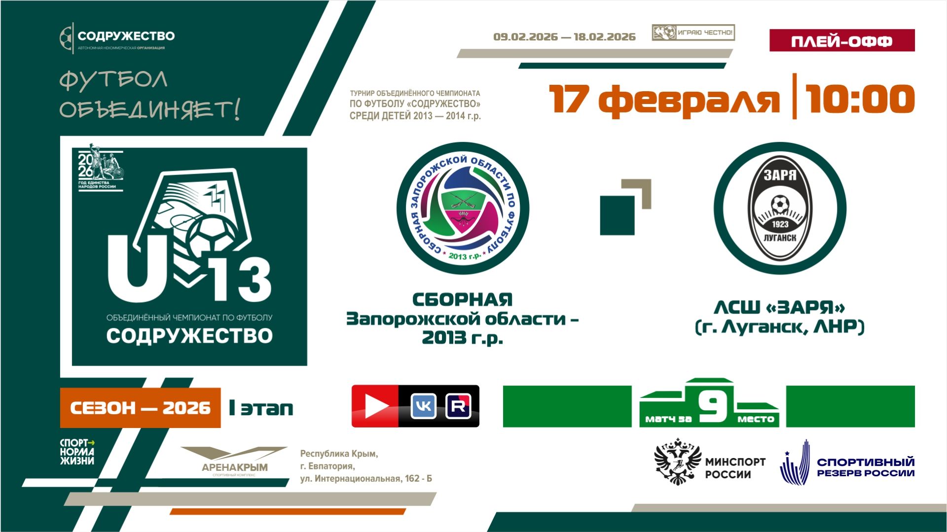 Игра за 9-ое место | Сборная Запорожской области 2013 г.р - ЛСШ «Заря» (г. Луганск, ЛНР)| 17.02.2026