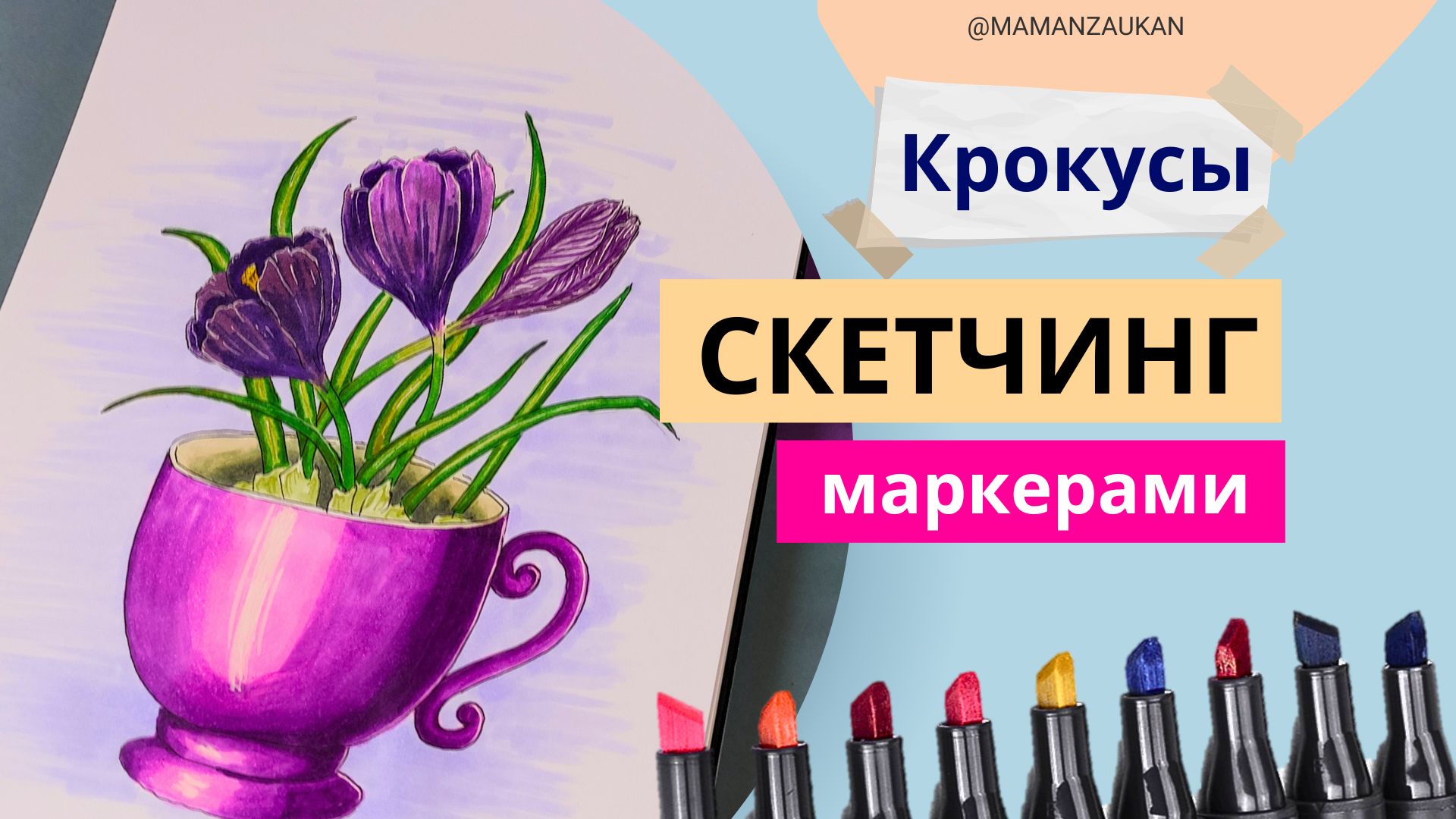 Весенние крокусы - рисование маркерами для детей и взрослых