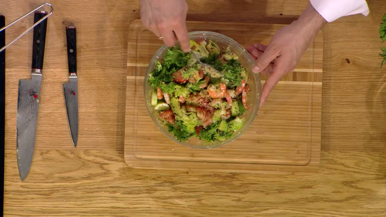Кукурузный хлеб. Калифорнийский салат с киноа и креветками