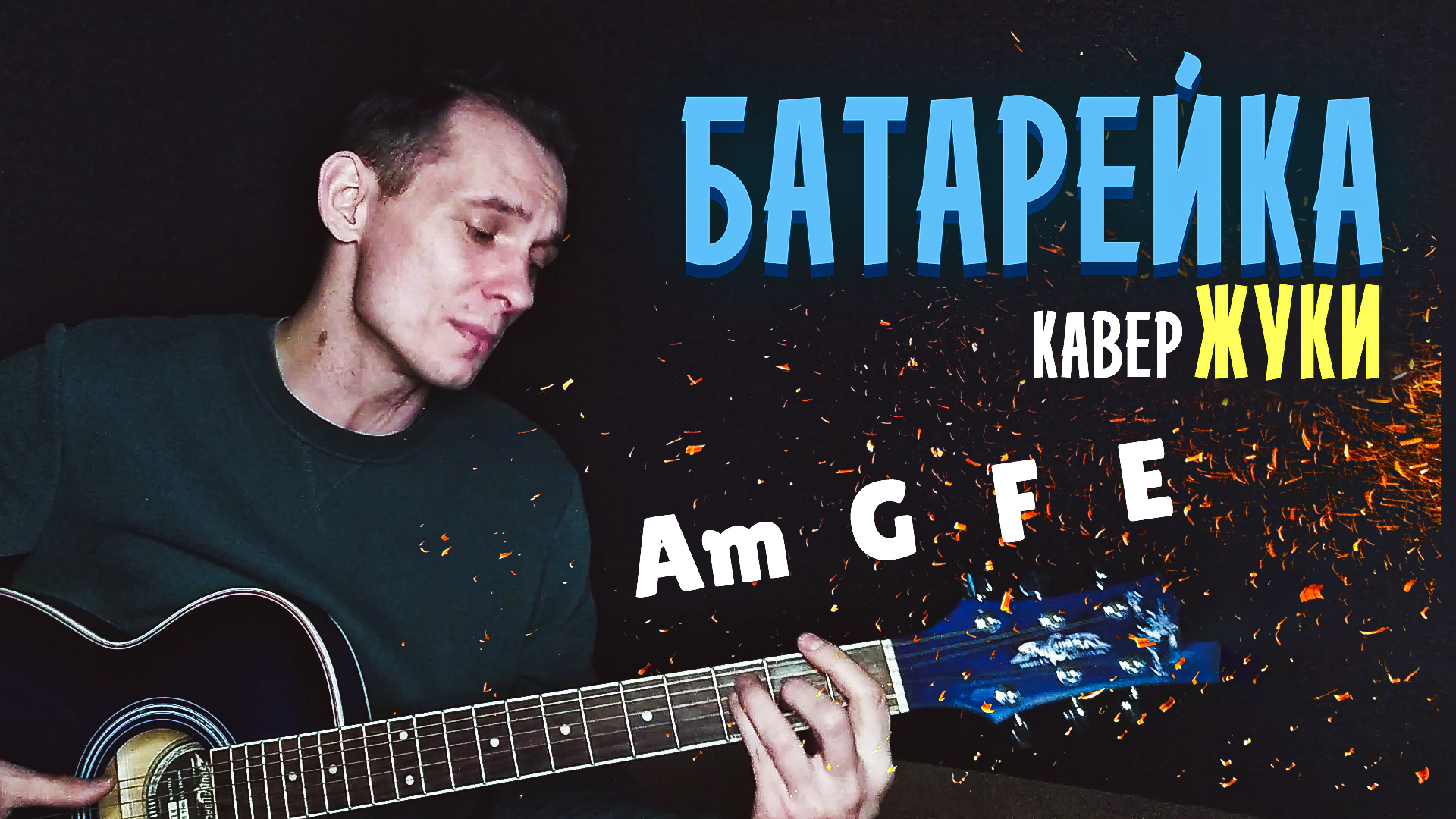 Кавер на песню Батарейка. Текст не очень знаю, но вроде спеть получилось. Кто не помнит эту песню поет рок-группа Жуки. И я решил сделать на старую добрую песню кавер на гитаре. Не судите строго.