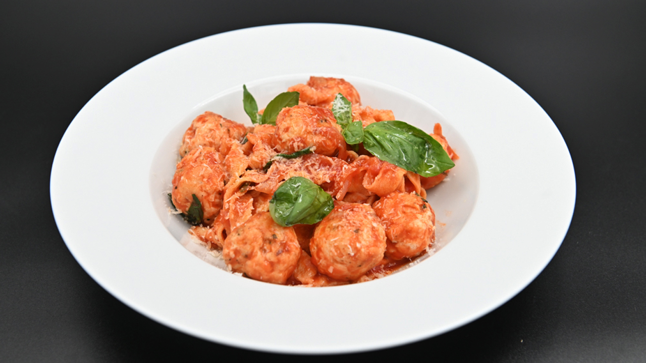 Паста с куриными фрикадельками