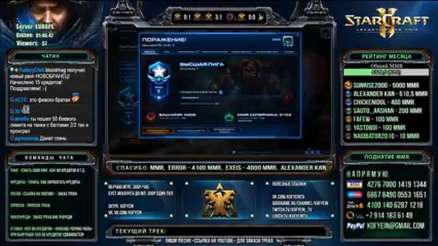 Доброго времени суток, друг! Добро пожаловать! О СТРИМАХ: Основная тематика стримов - игра Starcraft2. На моем канале вы увидите трансляции с различных турниров, игра на ладдере от первого лица. Играю за терранов в мастер лиге. Считаю терранов самой интересной, и в то же время, самой сложной расой в игре. Помимо СК2 возможно стримы по ВК3, КС:ГО, по желанию зрителей. О СЕБЕ: Меня зовут Павел. Проживаю в г.Хабаровск. Увлекаюсь СК2 с конца 2012 года. Очень люблю стратегии и кибер-спорт, поэтому после ВК3 мой выбор пал именно на СК2. ПОЛЕЗНЫЕ ССЫЛКИ: Твитч канал: http://twitch.tv/Kofyein_TV Группа ВК: http://Vk.com/KofyeinTV СПОСОБЫ ПОДДЕРЖКИ: • НАПРЯМУЮ: - VISA: 4276700014191344 - Maestro: 6768849005531651 - YANDEX: 410014062871218 - QIWI: +79141836149 - PAYPAL: kofyein@gmail.com •ЧЕРЕЗ СЕРВИС: - http://donatepay.ru/donation/kofyein - ЛЮБЫЕ СПОСОБЫ ОПЛАТЫ - ОПОВЕЩЕНИЕ НА СТРИМЕ Конфиг компьютера: Процессор: AMD Phenom II X4 965 BE 3.4ghz Видеокарта: AMD Radeon HD 5770 1024 mb Оперативная память: 4 gb Девайсы: Мышь: Logitech G400 Клавиатура: Logitech K310 Настройки стрима: Битрейт: 3500 / 30 fps (CBR и CFR включены) Разрешение: 1280х720 Пресет: veryfast ПРИЯТНОГО ПРОСМОТРА! ! ! Multistreaming with https://restream.io/
